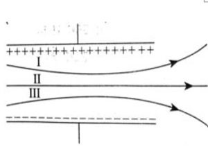 17. एक समान वैद्युत क्षेत्र में तीन पथ चिह्न I, II एवं III दिखाये गये हैं